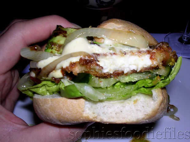 ingredientes de la hamburguesa de Portobello:Hongo Portobello--Cebolla-Berenjena-Tomate-Aguacate-Queso azulPreparación-Remojar la berenjena en agua caliente con sal durante 30 minutos.-Cocinar la cebolla, berenjena y patata dulce en aceite de oliva y