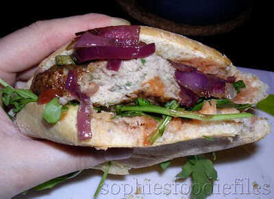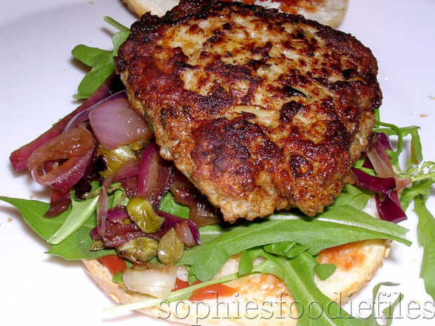 Usted puede encontrar tho sabrosa receta también aquí en mi blog: http://sophiesfoodiefiles.wordpress.com/2010/05/11/sophies-eggless-pork-veal-sage-bugers-served-with-a-balsamic-red-onions-capers-relish/
