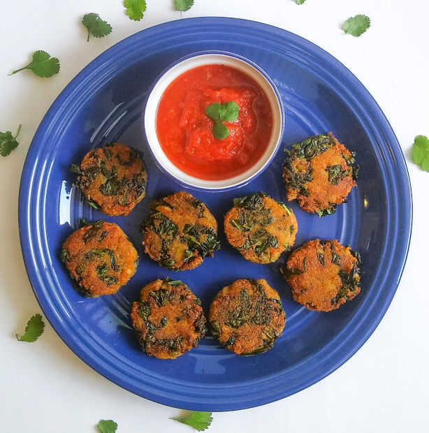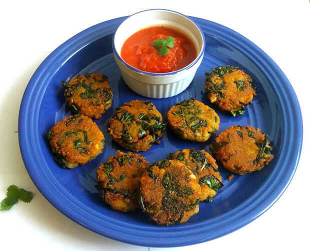 Estas milanesas saludables están hechas de col y patata. Col rizada es excelentes fuentes de vitamina A, vitamina C, vitamina K, calcio y manganeso y fuentes moderadas de riboflavina y ácido fólico. Esta es la primera vez que intenté col (no tenemos idea cómo probará). Fue bueno. Todos nos gustaban las hamburguesas. Esta receta es fácil de hacer y excelente manera de incluir la berza en la dieta. Estas milanesas se pueden servir como aperitivo o merienda de la noche hora del té. Por favor, pruébalo y quisiera saber cómo resulta.