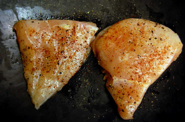 Martha recomienda hacer hamburguesas de pollo de tierra pero creo que esto es demasiado de una molestia adicional para nada. Compré pechugas de pollo muy grandes en el mostrador de la carne y cortar en tamaño de hamburguesa. Les dejo marinar con jugo de limón, Chile en polvo, pimienta y sal mientras preparaba el resto de los alimentos. Cocinar en la estufa o parrilla, solo no olvides agregar la rebanada de queso cheddar fuerte!