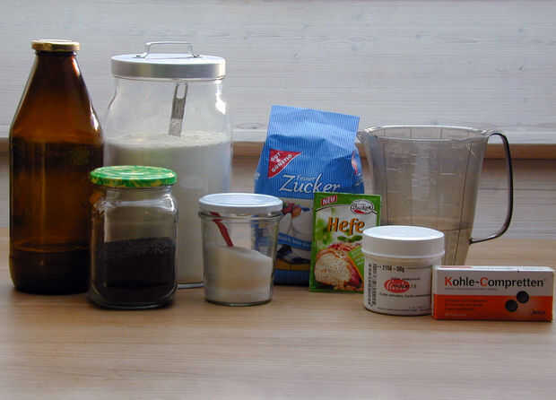 -una cucharadita de carbón vegetal Medicinal (2,5 gramos) (esto equivale a 10 tabletas de la marca que he utilizado)