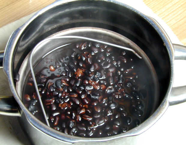 Tomar media taza de frijoles y cocerlos en tres tazas de agua hasta que estén hechas, tal vez, casi demasiado.