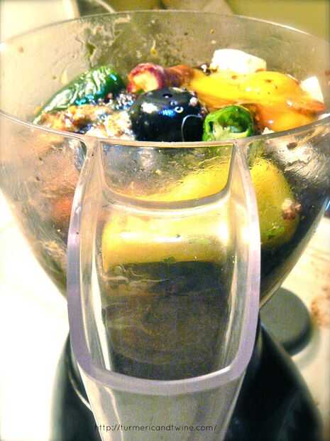En un procesador de alimentos mezcla todos los ingredientes excepto el pescado, quinoa y almendras machacadas. Mezcla hasta que no hay trozos grandes.