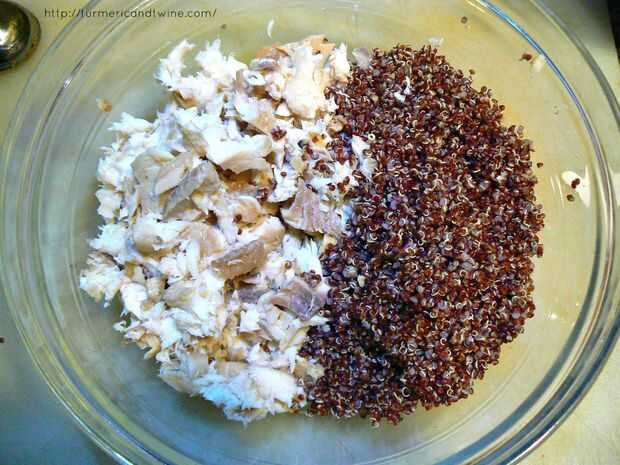 En un bol, escama de los filetes en trozos pequeños y agregar la quinua.