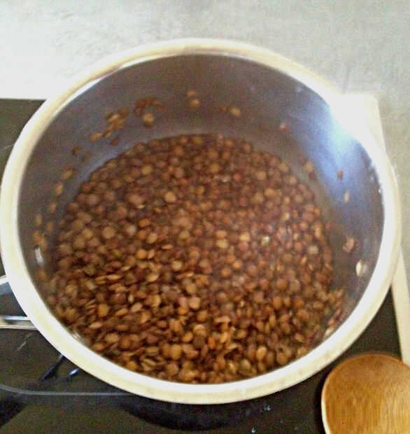 Cocinar las lentejas en una olla en agua durante 30-40 minutos o hasta que las lentejas ir suaves.