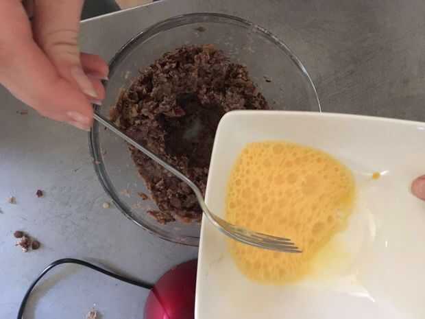 permite hacer... HAMBURGUESAS!Paso 1: ingredientes 1 lb carne de hamburguesaun huevomezcla de aderezo RanchGalletas Ritz (yo usé unos vegetales asados)bollos dequesoSalsa BBQPaso 2: Eggsplanation Romper el huevo en su propio tazón de fuente... Si ust