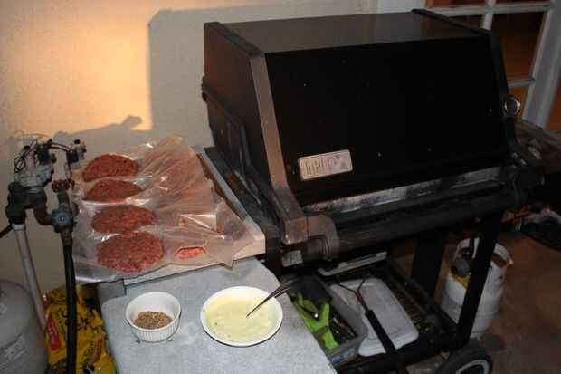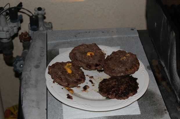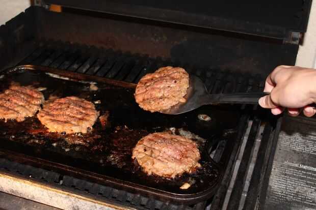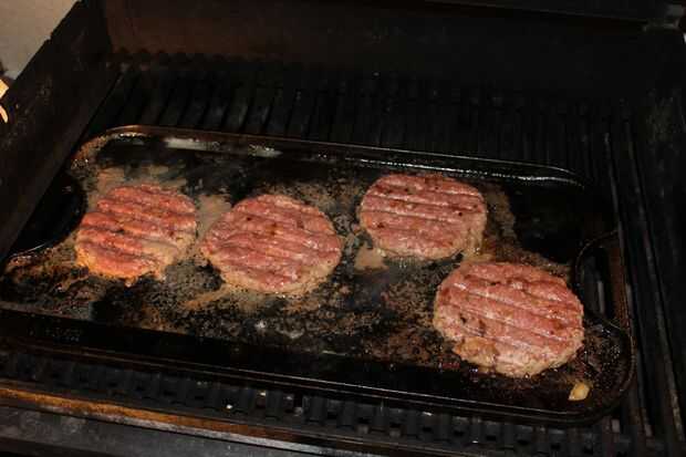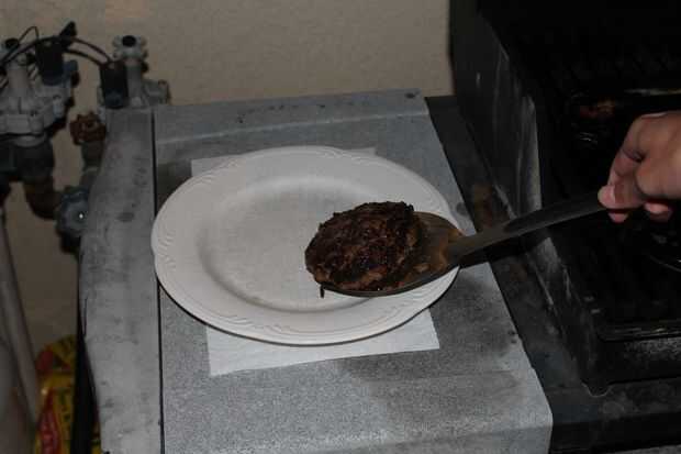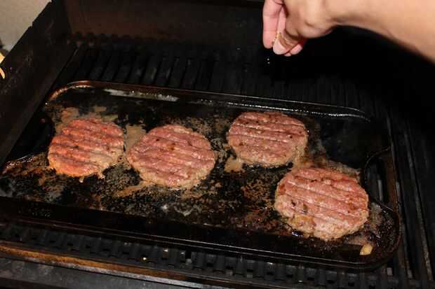 Abra el grill después de tres minutos y compruebe si las hamburguesas se hacen en el otro lado. Debe ser cocinado alrededor de los bordes, por lo menos. Si es así, voltear las hamburguesas y espolvorear otra vez en el otro lado con el condimento. Cierre la parrilla y deje que se cocine durante otros 3 minutos. Cuando se hacen hamburguesas, transferir a un plato y cubrir con papel aluminio, para mantener caliente mientras que la parrilla la otra tanda de empanadas.