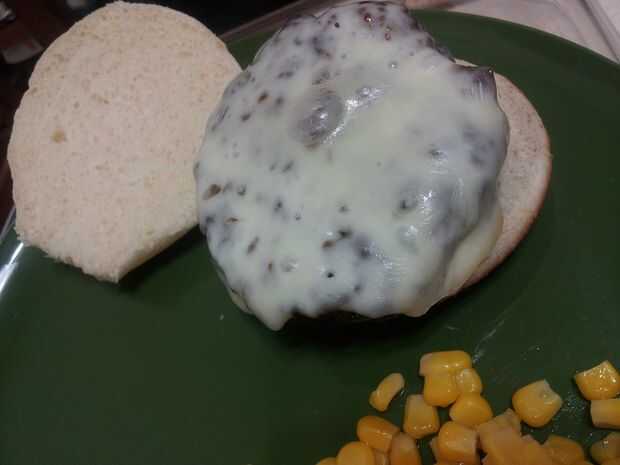 8. nos encanta el queso así que hemos añadido algunos... Me puso una rebanada sobre cada hamburguesa entonces dio vuelta el horno apagadoy esperaron alrededor de un minuto, minuto y medio luego sacó las hamburguesas. el queso se derrita perfectamente!