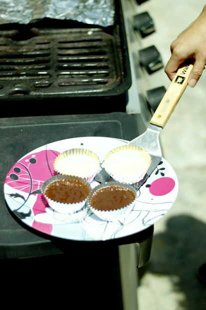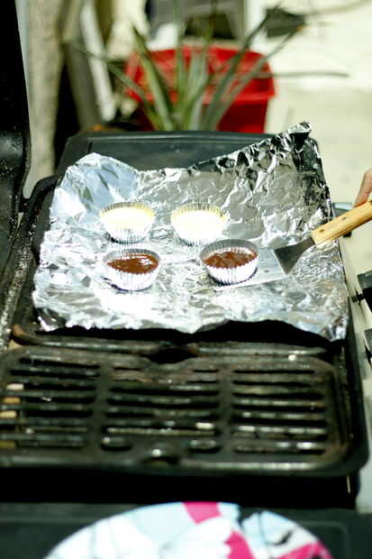 He precalentado sólo un lado de la parrilla y colocar los cupcakes en el otro lado por lo que los fondos no conseguir quemados.