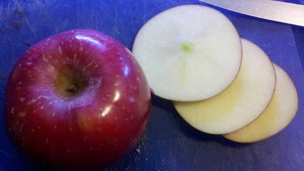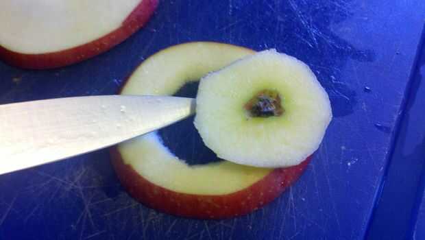 Usando un cuchillo afilado, corte el centro de la manzana.