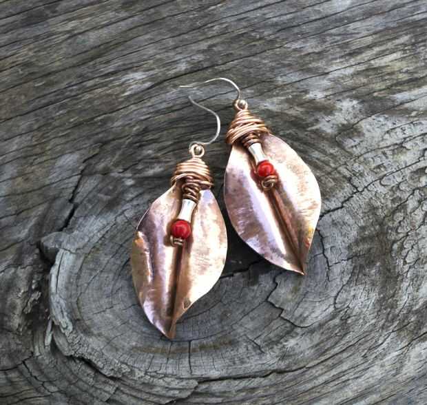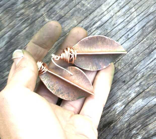 Hice este par de pendientes con una hoja de scrap de cobre.