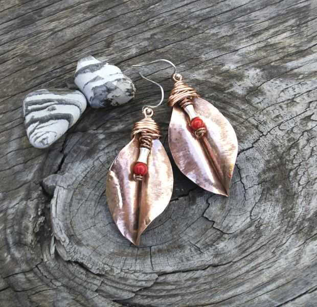 ●HAMMERED hojas de cobre EARRINGS● (12 / 12 paso)