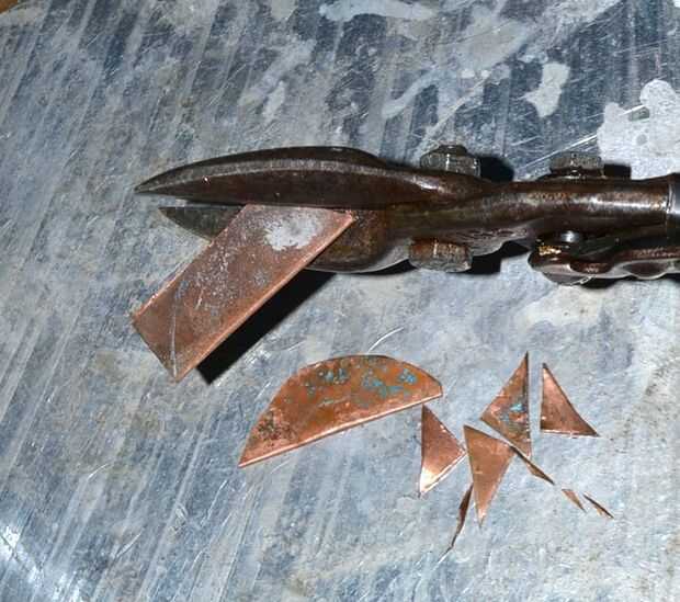 Tocón de Steampunk que encoge - martillo formando formas cóncavas en hoja de cobre amarillo