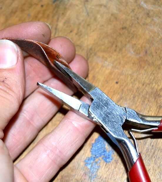 Este colgante se corta de la misma pieza de tubo de cobre como mi colgante cobre del cohete.Primero en relieve las líneas colocando una aguja sobre el cobre y adecuada. I luego recórtalo y soldar una tira de cobre en la parte posterior. Coloca la mad