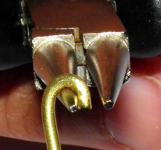 El cierre funciona igualmente bien en alambre de latón, cobre, plateado y oro. El cierre permite la construcción directamente desde la bobina de hilo para minimizar el desperdicio de metal.