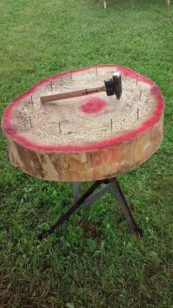 El vestido de comercio martillo-Beat dispone de una sección transversal de un árbol, golpeados en todo su perímetro y un martillo de Cruz de clavos. Concesionarios de Hammerschlagen puede obtener todas estas cosas de martillo-Beat. O, usted puede fabricar su propio y obtener permiso por escrito de martillo-Beat a participar en una competición de conducción de clavo bajo lo que ha hecho.