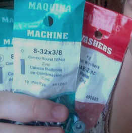 , Tuercas y arandelas. Usted necesitará 16 tuercas, pernos y arandelas para fijar la malla en la tapa. Para aquellos que se perderán totalmente ir a la tienda de hardware (* levanta mano *), necesitas tornillos de máquina. Utilicé 3/8 de una pulgada larga ocho treinta y dos tornillos (8-32 x 3/8 ) y 8 arandelas del tamaño.