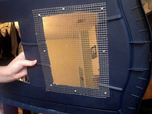 El proceso es simple: en una caja de color, perfore un orificio de, enrosque el tornillo de y repetir. Hacer esto hasta que tenga un orificio en cada una de las cuatro esquinas y luego un agujero en cada borde de la ventana.