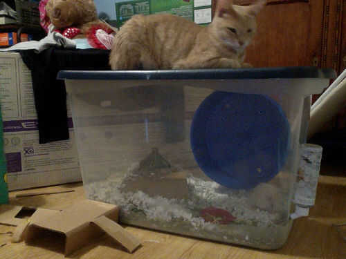 tengo una pecera recientes para la fabricación de esta jaula. Se trata de jaula del hámster muy simple. Más gente usando este tanque para cualquier proyecto. ¿La tienes?Paso 1: Cualquier hamsters en la jaula sola Piensa en mis animales. No son otra c