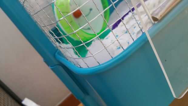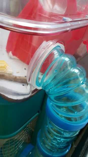 4. conectar los tubos de hámster de la jaula superior a la caja.