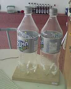 Encontrar 2 botella. Utilice un cuchillo para cortarlo. Necesitamos ust la parte inferior.