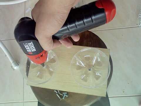 Instale la botella en madera tornillo. Me levanto el casstle para hacerla de orina posible.