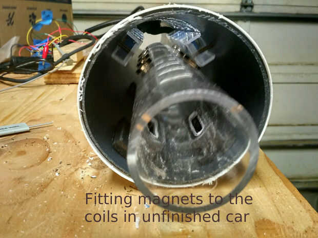 La tubería de drenaje es barato y ligero, y puedo visualizar trazar un tramo muy largo de él para demostrar velocidad. Sin embargo es opaco y es necesario cortar ranuras de visualización en varias partes. Para un vacío, éstos tendrá que ser cubierto con un material transparente y sellado.