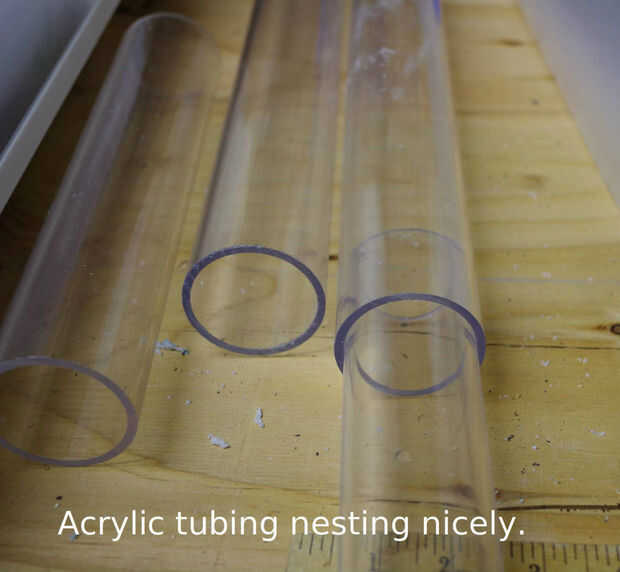 Una advertencia para aquellos que trabajan con tubos de acrílico. No use alcohol desnaturalizado para limpiarla y marcas, etc.. Aunque normalmente fino para la limpieza de acrílico plana, debe ser un componente de estireno en el tubo que causa grietas a la forma cuando los agujeros o cortes son tocados con el metanol. Las grietas no dañar la estructura, pero empañó la mirada limpia.
