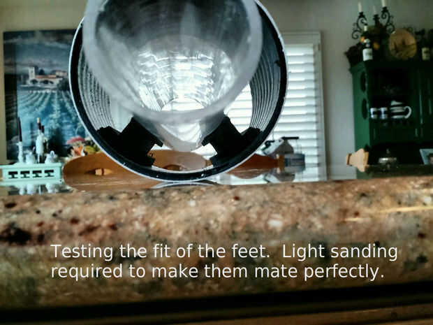 Tools o Sketchup PC program o 3D Printer o Full sheets sandpaper – for truing up foot bottoms (& tops) o 18" scrap of 4” ABS (or PVC) pipe – for sanding bottoms to shape o Length of 2” tubing – for sanding foot bottoms to shape Components o ABS filament for 3D printer about 250g - $7 (this is for many tries at getting it right)