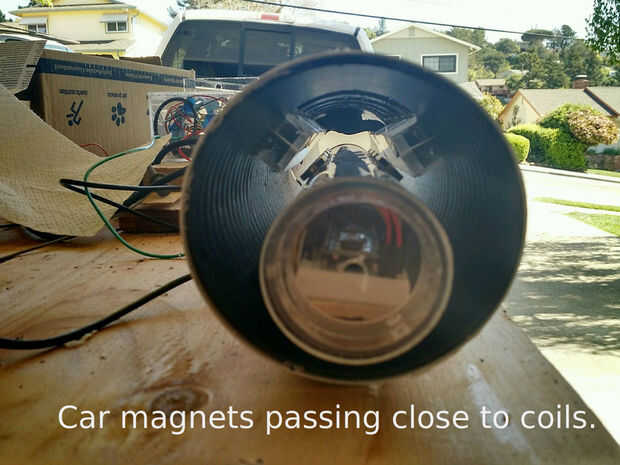 Para primeras pruebas hemos utilizado un pequeño coche de madera en las ruedas y un único conjunto de bobinas. Esto probó que podríamos hacer pasar con nuestras propias bobinas y lógica de control.