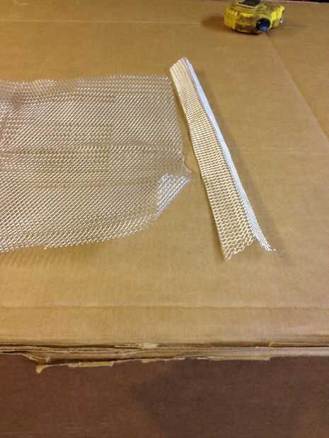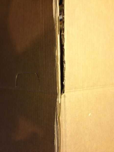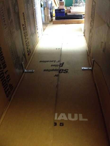 Empecé con el armario más grande pude tener en mis manos en la caja en movimiento. El ancho era lo que andaba buscando y cerca de altura no podía reclamar. El único problema fue con la profundidad, así que cortar justo al lado de centro y pegué detrás juntas para disminuir la profundidad, manteniendo el lado más corto en el interior de la caja para no ser visto. Luego caliente-pegué algunos soportes de 90 grados en el interior para ayudar a mantener su forma. Ya que habían brechas leve donde el cartón se unieron, usé un producto llamado Celluclay para llenarlos. Es un producto de maché de papel triturado que sólo tiene que añadir agua y luego trabajar como arcilla. Grabado en alguna proyección metálica dentro de la caja para ayudar a mantener en su lugar.