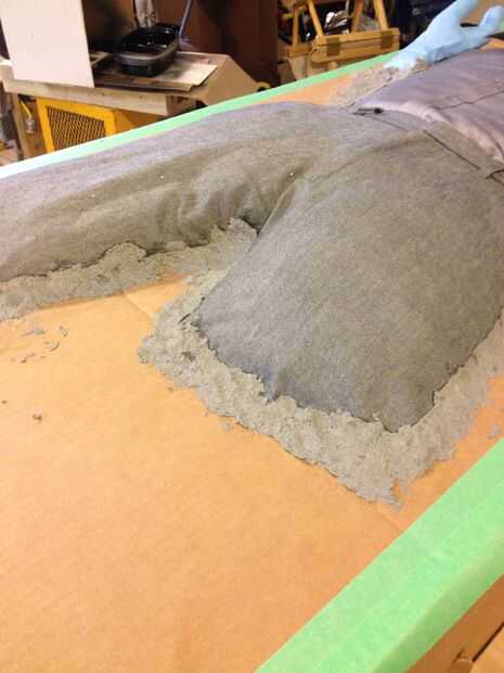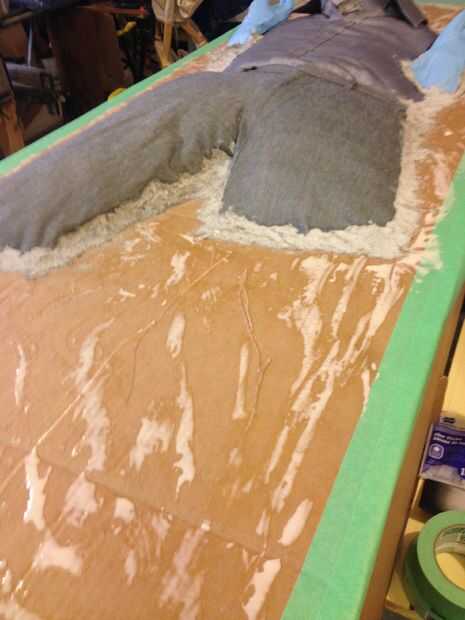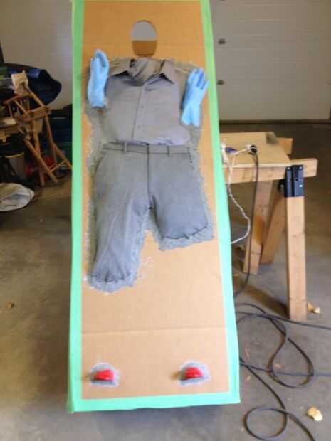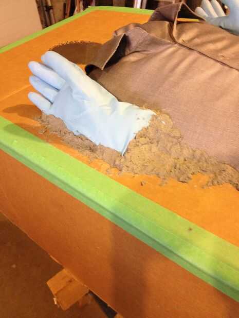 Por lo que no sólo las líneas limpias de ropa de Han en una caja de cartón, que necesitaba para que se vea como si él se congelaron en él. Para lograr esto, he azotado algunas Celluclay más y presiona alrededor de los bordes de la ropa, zapatos y agujero de la cara. Antes de empezar a pintarla, quería añadir textura al Han fue congelado en el panel. Para ello, intenté untando pegamento blanco sobre el frente, pero encontró sólo terminó plana y preocupado que no puede ser diferente una vez pintado. Entonces decidió añadir líneas de pegamento caliente para un efecto más 3D.