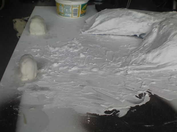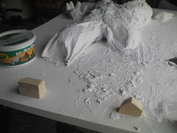 Los pies eran la parte del cuerpo pasada intenté y el primer compromiso de la integridad del original. En primer lugar, que me iba a cortar las puntas de un viejo par de zapatos, pero luego me di cuenta que apenas pude modelo con arcilla seca de aire. Así como no desperdiciar arcilla más entonces que necesitaba, clavó dos trocitos de madera para el marco. Luego en forma de la punta de los zapatos de Han con la plastilina sobre la madera. Ya que mi modelo no es para escalar, parecía un poco extraño tener los pies tan cerca a las piernas. Realmente lanzó el efecto entero apagado así que quitar los pies y optó por una versión sin pies.