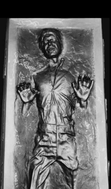 página web sobre el Geek que sugieren para hacer chocolates con el Star Wars Han Solo en carbonita hielo cubito. Bueno aquí es una receta de chocolate extra deliciosa.Paso 1: Se necesitaHan Solo o cualquier otro dulce Geek creo que silicona molde (mú