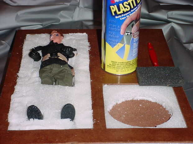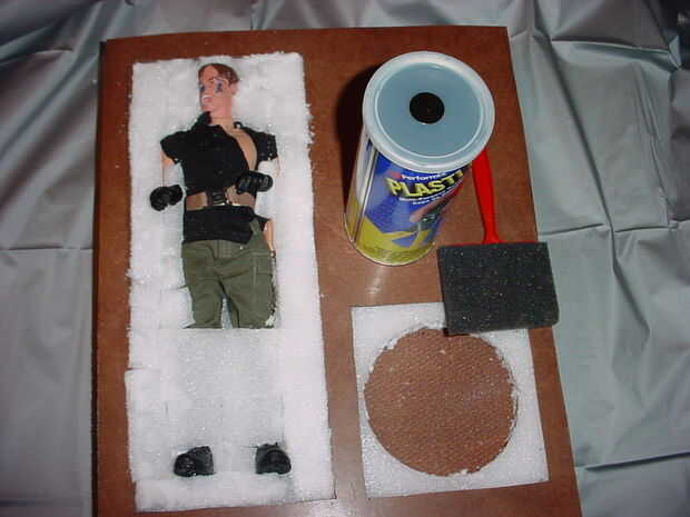 Lo que se necesitaHan Solo en carbonita de silicona moldeMezcla de cemento/hormigónPegamento caliente (alrededor de 3 palos)Pintura en aerosol plataPintura de acrílico negroRojo Super brillante LED (yo usé 27 LED rojo 5mm)Resistencias (60 ohmios para