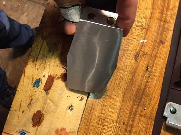 A pesar de una densidad del 90% de la impresión, estaba preocupado por la fuerza del plástico que aguantar mis movimientos durante todo el día en el Comi-Con. Por lo tanto, había reforzado las hebillas con hojas delgadas de aluminio. Había trazado de los patrones de las impresiones 3D, les hizo un poco más grande para que los bordes pueden ser curvados sobre, luego había pegado a las piezas de la hebilla. Estoy más seguro resistirá, además de obtener el fresco aspecto metálico verdadero en contraposición a simplemente plata de la pintura. Luego, pinté toda la correa 3D piezas de plata.