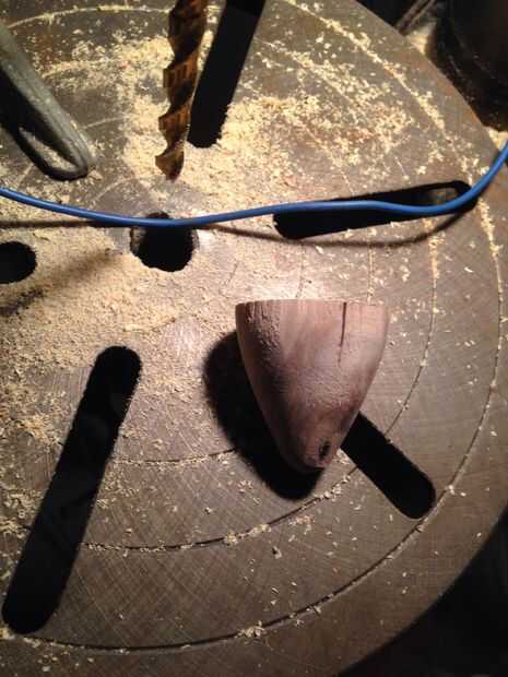 La cabeza y la cola se hacen de una pieza de nogal que forma en un torno en una sola pieza y cortar por la mitad.