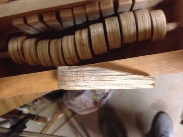 Fin y manivela la pieza ambos contrachapado misma como los círculos.