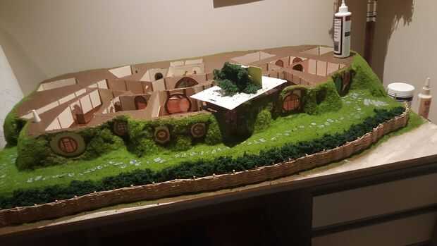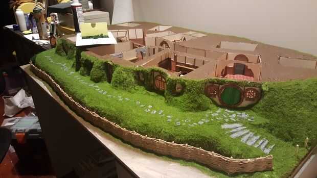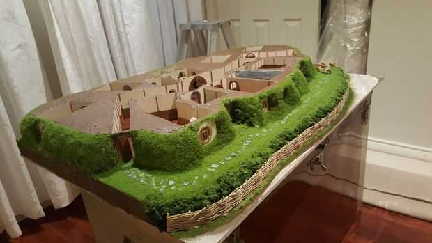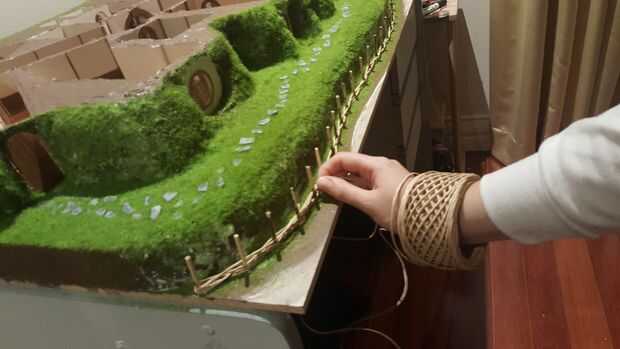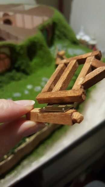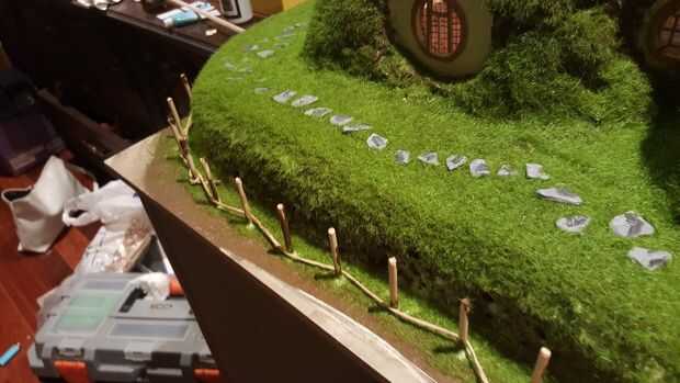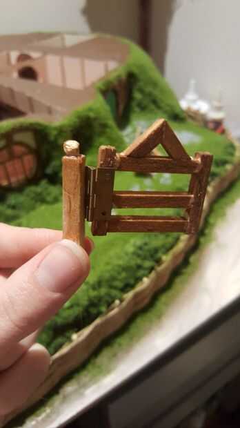 Los piquetes que se mantuvieron la valla frontal están hechos de madera de balsa y manchados.