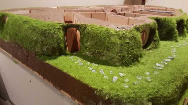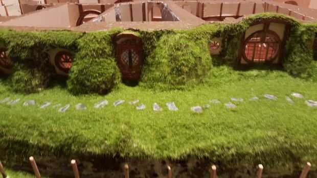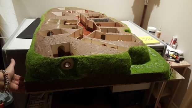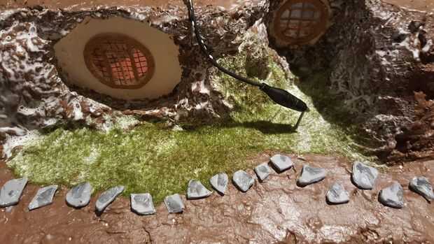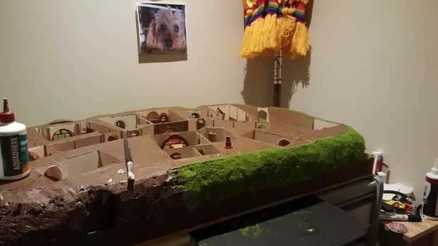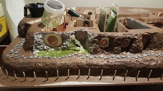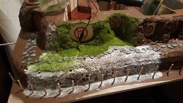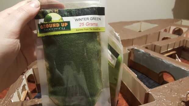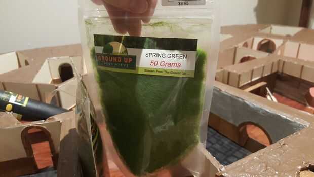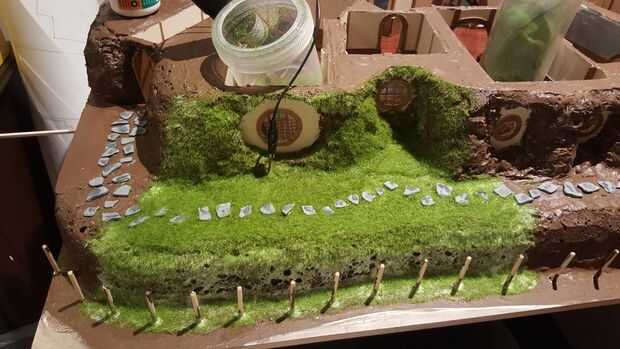 Cubrí toda la pieza de pegamento PVA inserta el clavo y abarca las áreas en una mezcla de la hierba estática claras y oscura.