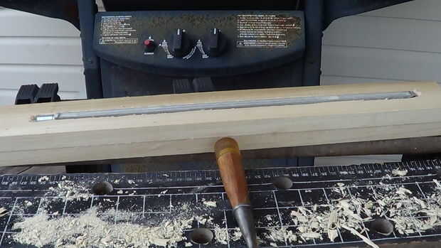 Siguiente paso es hacer el cuello en blanco e insertar el alma. Para el cuello en blanco, usted necesitará un pedazo de madera dura, por lo menos una pulgada de espesor, ancho suficiente para adaptarse a su diapasón en la y unas pulgadas más largos que el diapasón. Estas pulgadas extras eventualmente se convertirá en la cabeza. Una vez que hayas cortado tu espacio en blanco, sacar su cincel. Una cavidad debe ser tallado en el espacio, que albergará el alma.