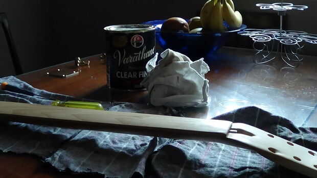 Siempre es una buena idea para teñir y sellar un cuello. Hace durar más tiempo y mira más agradable. En este cuello utilicé sólo una fina capa de acondicionador. Asegúrese de que el cuello está bien lijado y no hay ningún residuo de pegamento en cualquier lugar en antes de hacer esto.