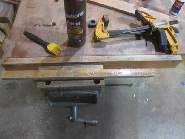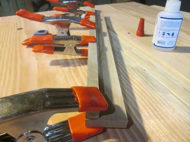 Primero fije la tira de 1/4" al borde de 1/2" espesor x 1 3/4" pieza amplia de madera con pegamento de madera. Me gustaría añadir unas gotas de CA (pegamento) para el pegamento de madera después de que separara. Mientras que demasiado frágil de un bono para ser usado en su propio pegamento CA actuará como una pinza instantánea para el pegamento de madera. Sostener la pieza hacia abajo con las manos por unos minutos, y no se mueva. Abrazadera para arriba
