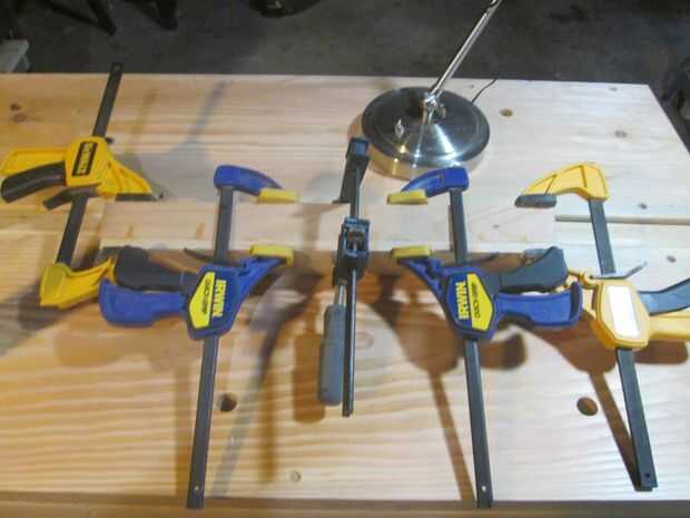 Una vez que repita el proceso separando el pegamento de la misma manera en la parte superior de ambas piezas (se muestra) y sujeción 2 1/4" del tablero sobre el