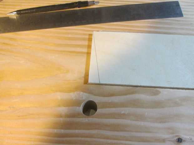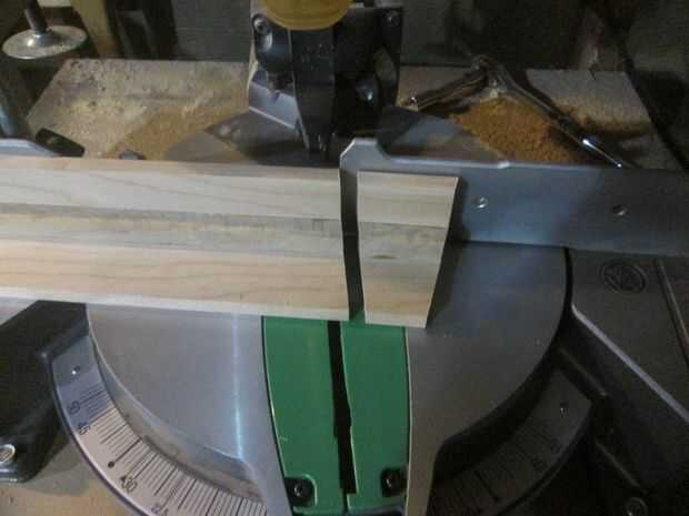 En primer lugar, decidir sobre un ángulo. Me gusta el 1:6 (10) grados. Es bueno para la madera dura y suave y es el mejor (en mi opinión) cuando las clavijas son muy estrechas. Hice un sistema de guía de la sierra (foto). En lugar de trazar una línea de 1 pulgada más de 6 pulgadas, reduce a la mitad para que sea más fácil - 1/2" sobre 3". No confío en la escala en mi sierra para cortar ingletes. Una vez que corté el gulde, utilizo para alinear la hoja