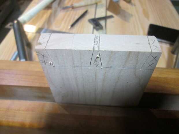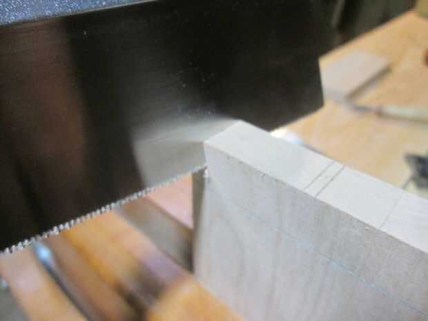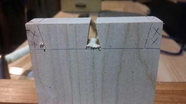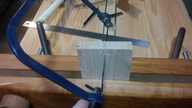Una vez todos los cortes, retirar la mayor parte de los residuos entre las colas con una sierra de marquetería. No vaya a la línea de base