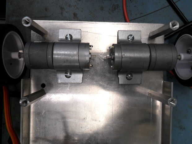 Los motores de la C.C. se pueden montar por tomar alguna pieza de metal y doblan alrededor de los motores y luego adjuntarlas a la placa base con algunos screws(picture).
