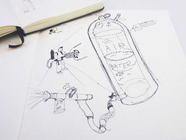 Encontré un cañón de agua de jabón en Amazon, que cuidó del jabón y me puso en el diseño. Fuertemente me recordó de una manguera o el fantasma que captura armas en Ghostbusters.