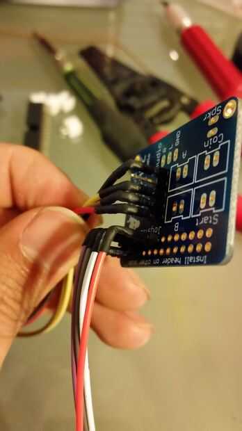 La guía de Adafruit para cablear el Super juego pi fue útil para determinar qué cables se conectan a qué boards. Recomiendo el siguiente que la sección para obtener la corrección del cableado.