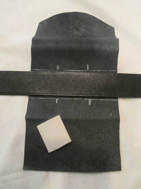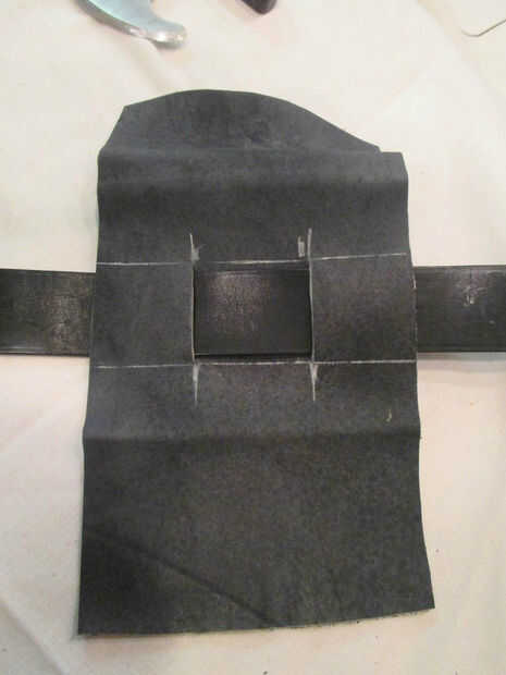 Luego había dividido verticalmente por tercios y dibujó dos líneas para las ranuras de la correa para ir a través.